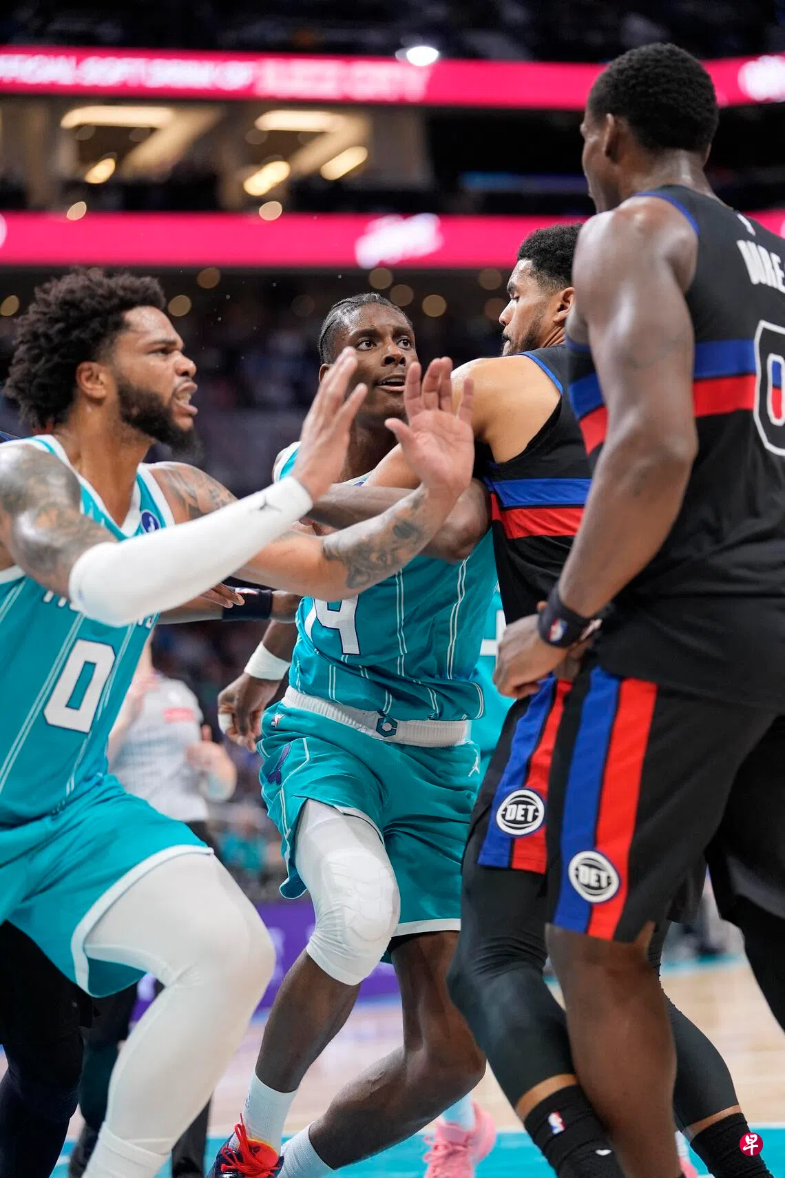 在这场美国职业篮球赛(NBA),东部领头羊活塞与黄蜂之间的激烈对抗,在第三节中段升级,当时黄蜂的迪亚巴特(Diabate)对活塞的杜伦(Duren)犯规,成为导火索。