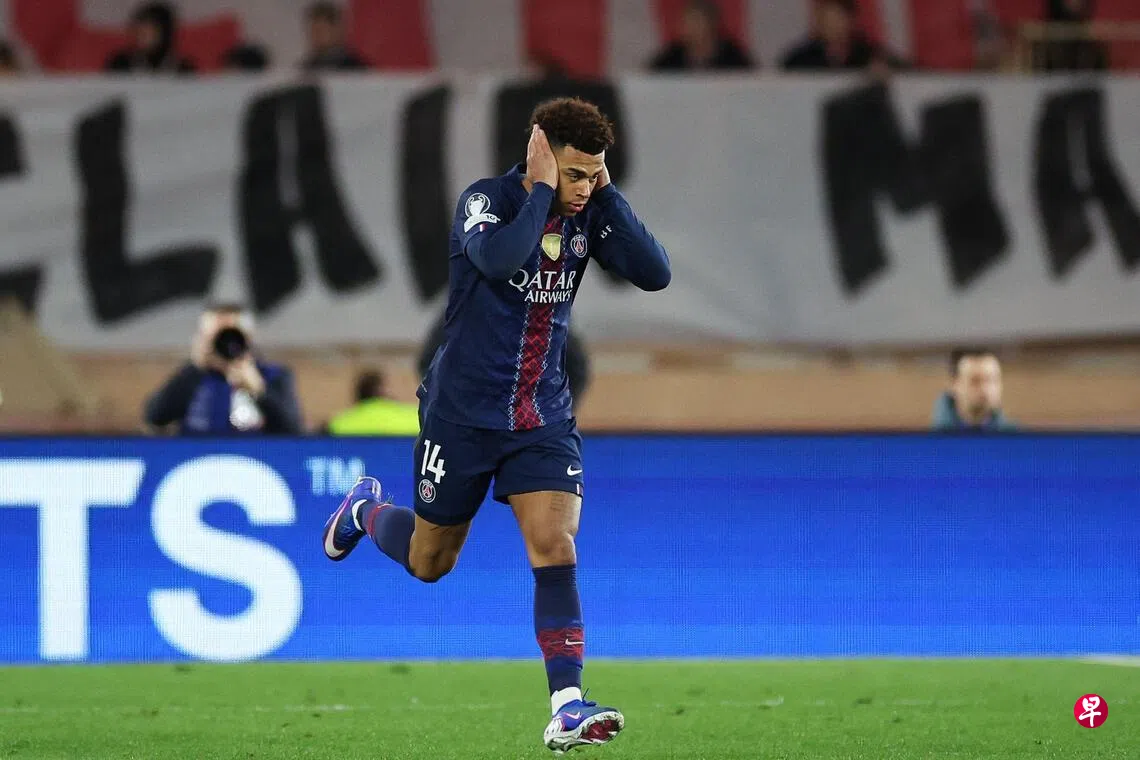 PSG在上周末的法甲联赛1比3意外输给雷恩(Rennes),丢失榜首。他们本场开局不顺,仅开踢55秒就被摩纳哥前锋巴洛贡(Balogun)头球破门,成为队史欧战最快丢球。巴洛贡在第18分钟梅开二度,让摩纳哥2比0领先。