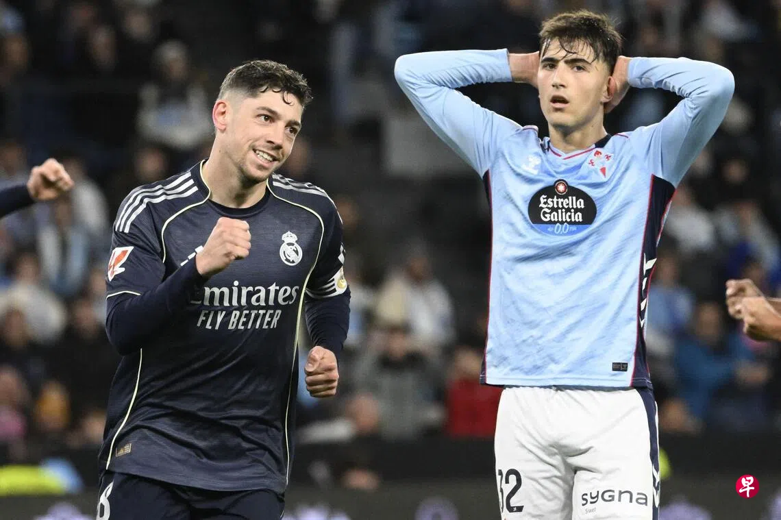 (维哥综合电)乌拉圭中场巴尔韦德(Valverde)在补时第五分钟的一记折射进球,帮助皇家马德里(Real Madrid)在新加坡时间星期六(3月7日)的西甲联赛中,客场以2比1艰难绝杀塞尔塔维哥(Celta Vigo),终结了两连败的颓势。