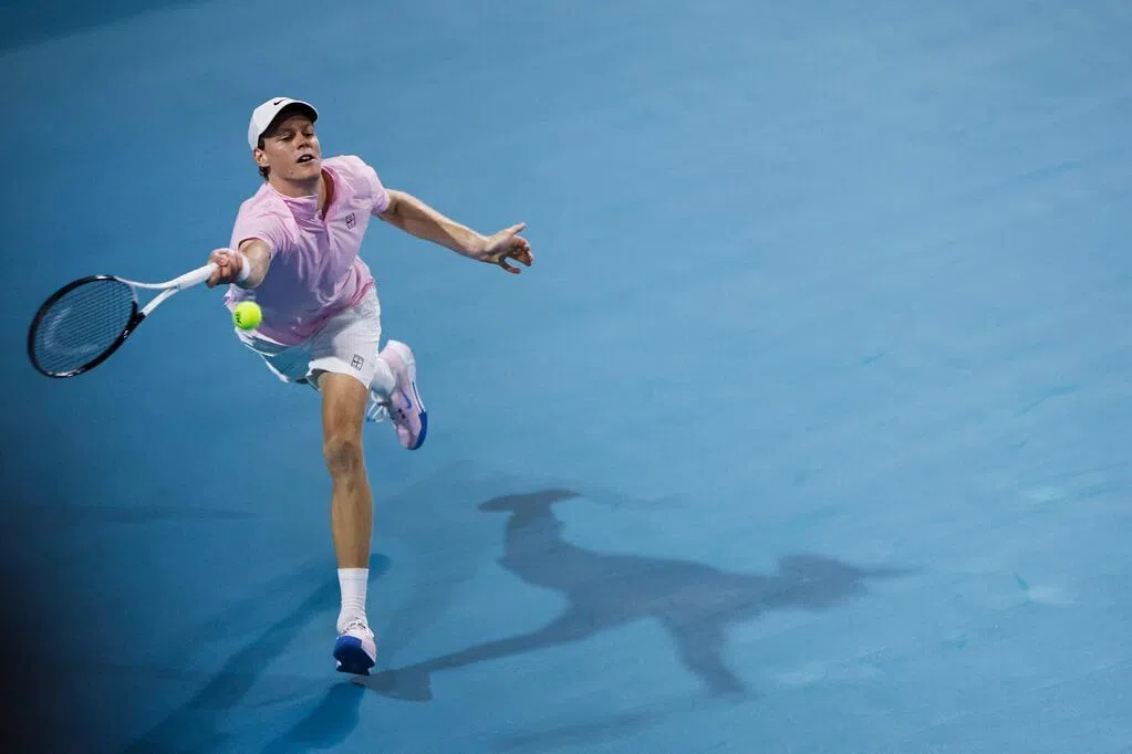 这场决赛因雨延迟约90分钟,在等待期间,辛纳与队员们踢起足球来保持状态。比赛开始后,他早早破发,以3比1领先世界第22的莱赫卡,随后依靠稳健的发球,以零失误赢下首盘。