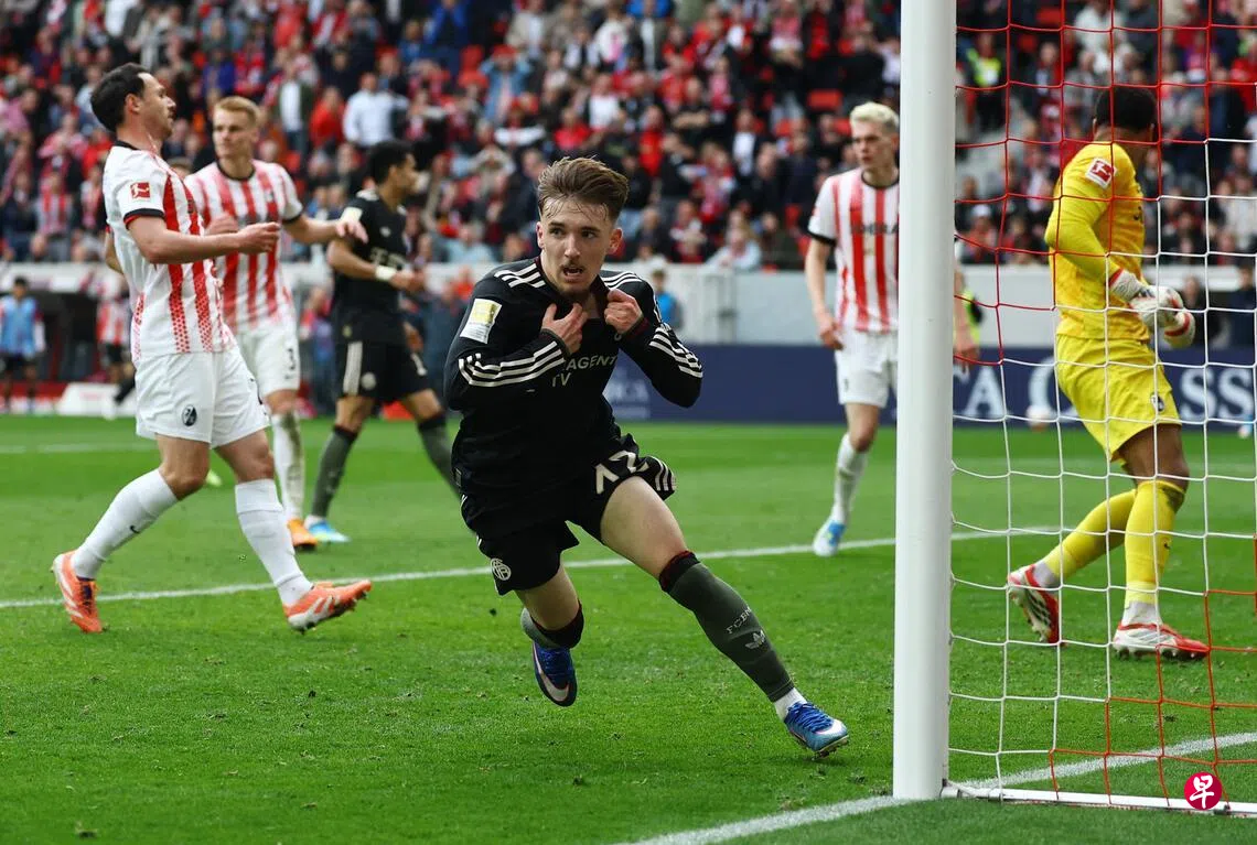 (柏林综合电)在星期六(4月4日)进行的德甲联赛中,拜仁慕尼黑(Bayern Munich)在一度两球落后的情况下,最后20分钟内连进三球,最终在客场以3比2逆转弗赖堡(Freiburg)。
