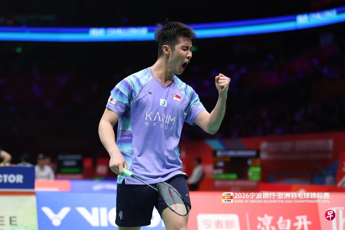 新加坡头号男单骆建佑星期四(4月9日)在宁波举行的亚洲羽毛球锦标赛中表现出色,以2比1战胜日本球员渡边航贵,闯入八强之林。