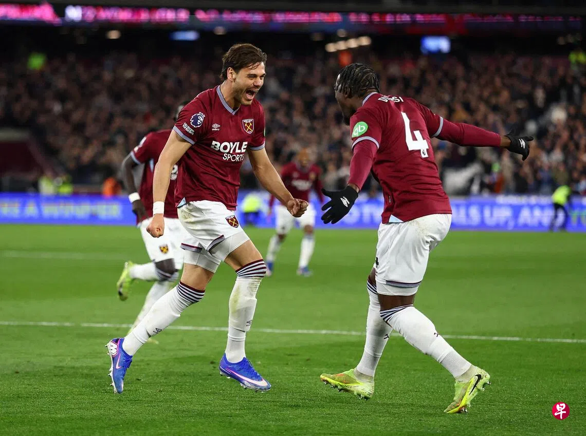 (伦敦法新电)西哈姆(West Ham)在新加坡时间星期六(4月11日)的以4比0大胜狼队(Wolves),成功脱离英超降级区,同时也让“热刺”托特纳姆(Tottenham Hotspur)跌入倒数三名的降级深渊。
