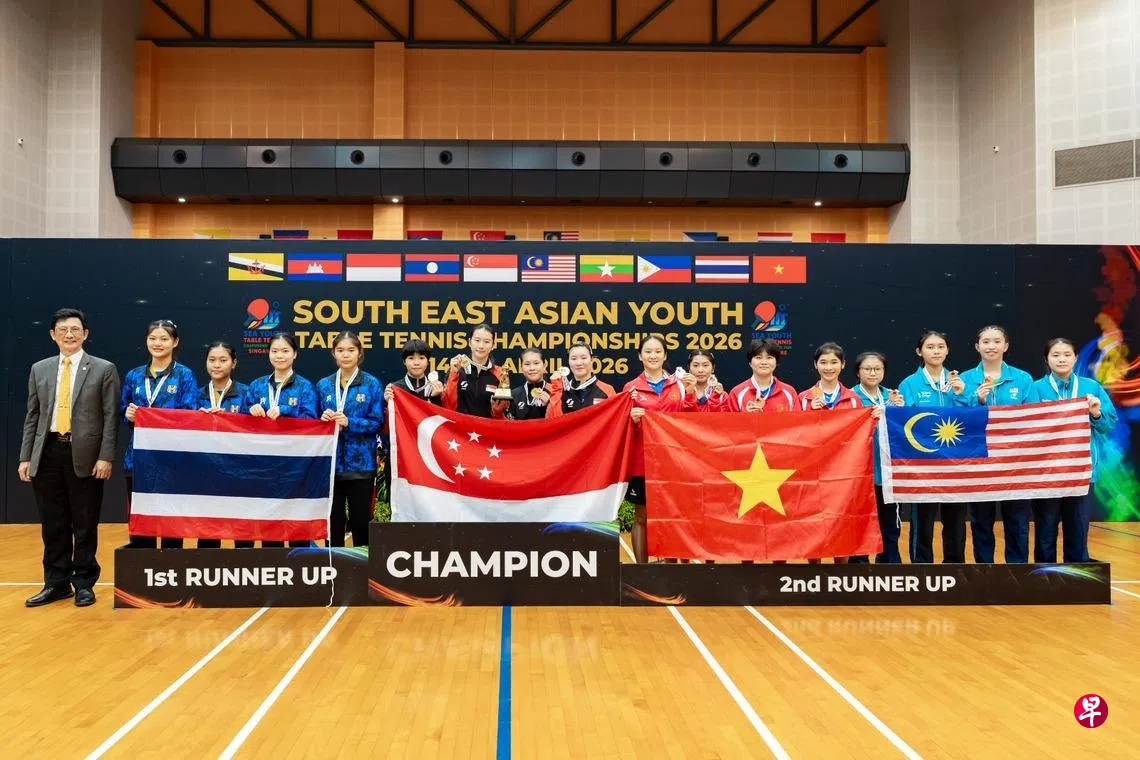 新加坡乒乓球队星期四(4月16日)在2026年东南亚青少年乒乓球锦标赛上表现出色,他们在19岁以下(U19)的男团和女团都获得冠军,15岁以下(U15)拿下男女团亚军。