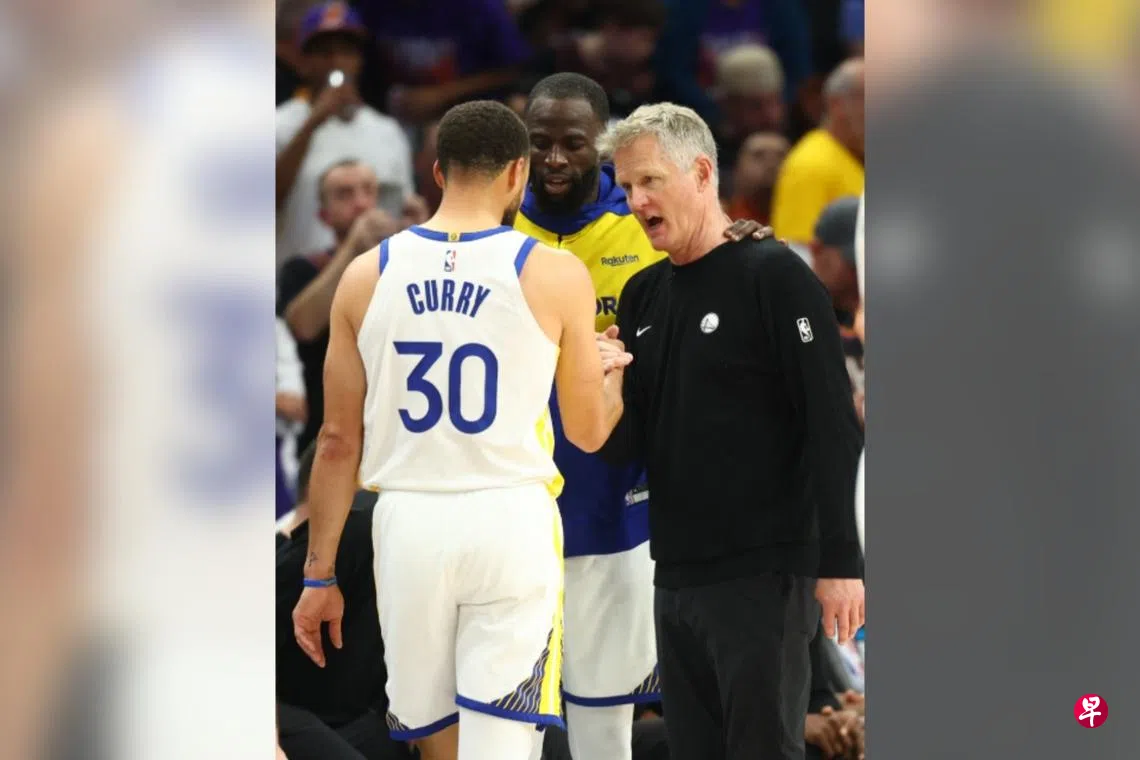 勇士在上星期六(18日)以96比111不敌菲尼克斯太阳(Phoenix Suns)无缘季后赛。比赛结束时,科尔与格林及当家球星柯里(Curry)场上对话,共同度过一个动情的时刻。
