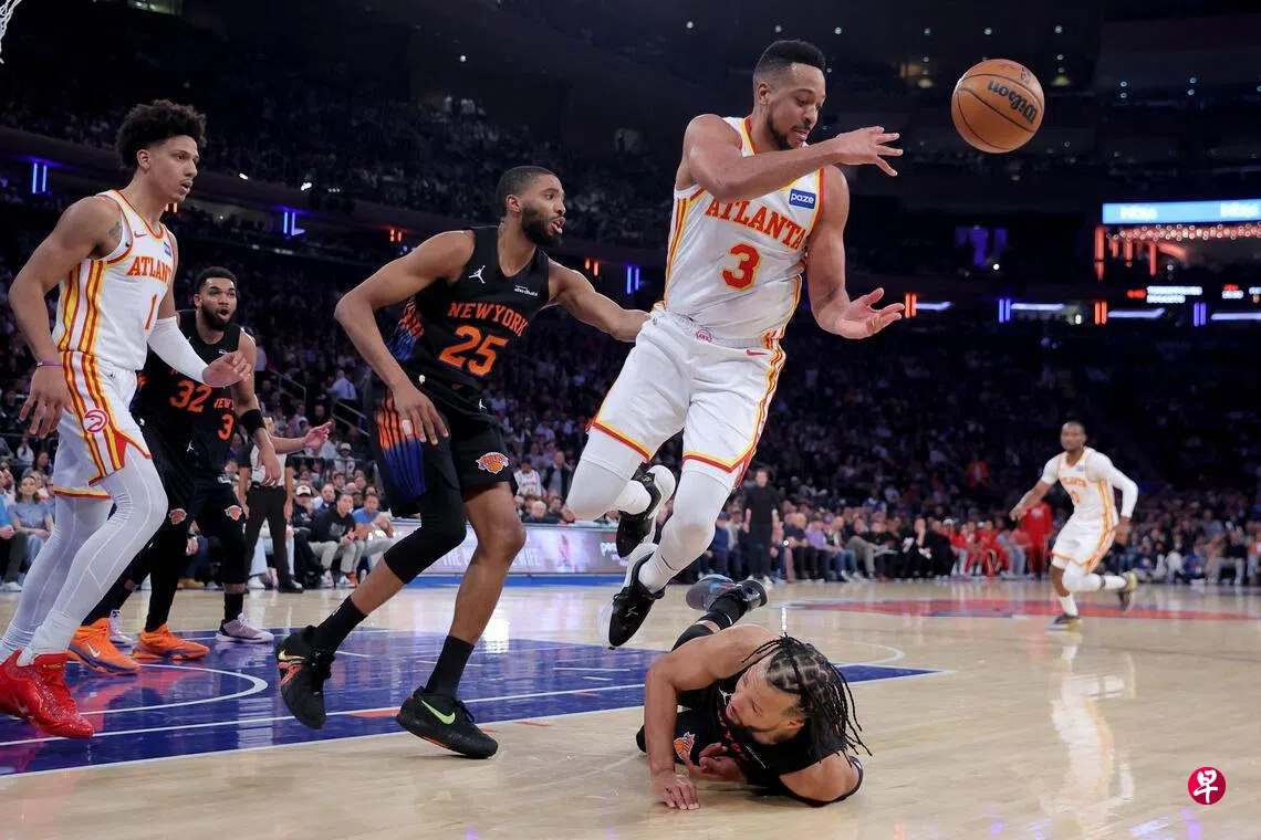 (纽约综合电)麦科勒姆(McCollum)在新加坡时间星期二(4月21日)砍下全场最高的32分,帮助客场作战的亚特兰大鹰队(Atlanta Hawks)在美国职业篮球联赛(NBA)东部季后赛首轮的第二场较量中,以107比106逆转击败纽约尼克斯(New York Knicks),扳回一城。
