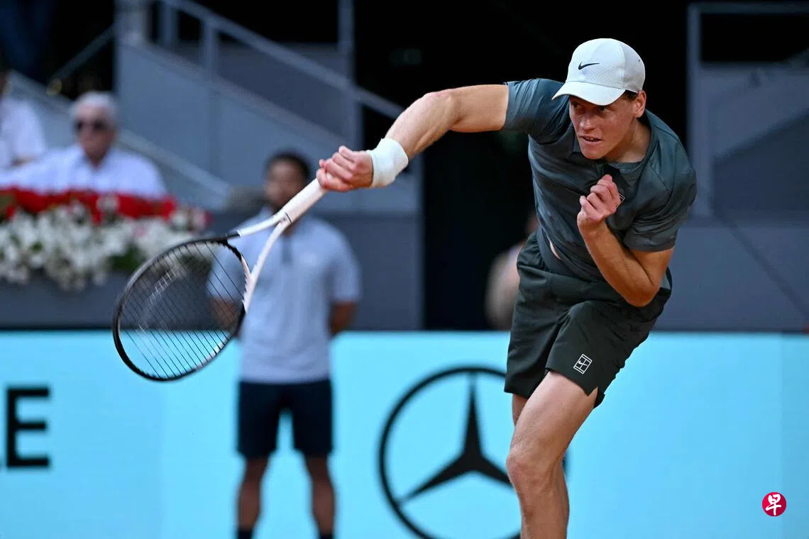 (马德里综合电)世界第一男子网球员辛纳(Sinner)在星期五(4月24日)的马德里公开赛第二轮以6比7(6)、6比1、6比4击败法国选手邦齐(Bonzi),向连续夺得第五个1000级大师赛冠军的目标迈出第一步。