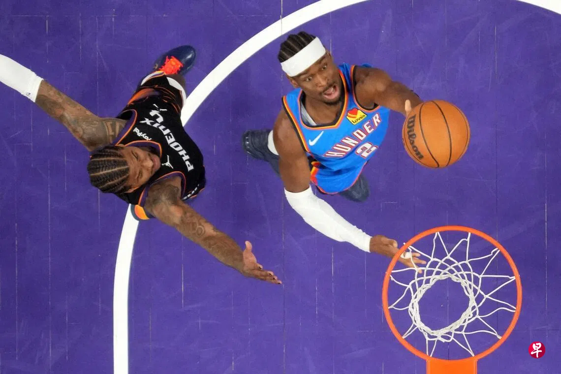作为现任NBA最有价值球员(MVP),亚历山大全场18投15中,还送出八次助攻,帮助卫冕冠军雷霆在七场四胜制的季后赛首轮取得三连胜。