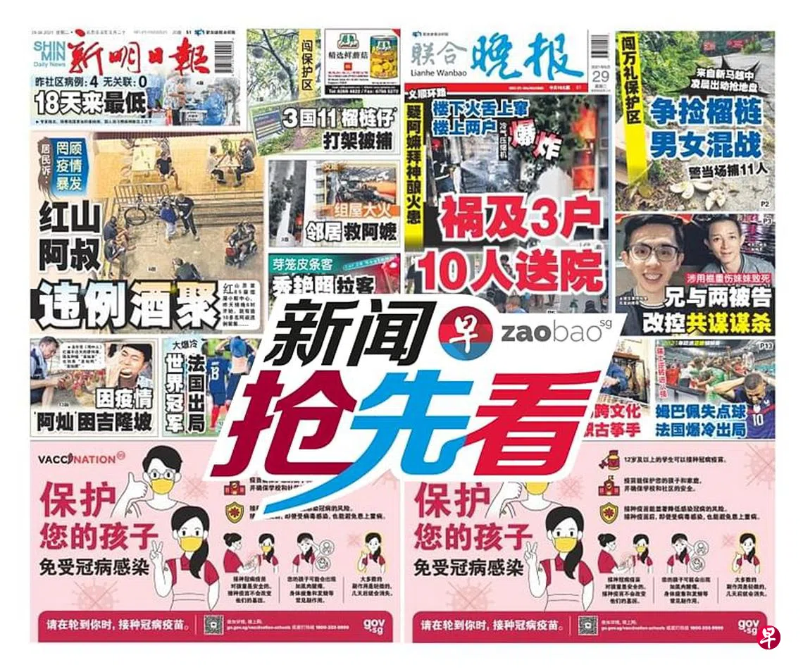 zaobao.sg直播节目《新闻抢先看》让观众第一时间掌握晚间报章《新明日报》和《联合晚报》当天的重点新闻。