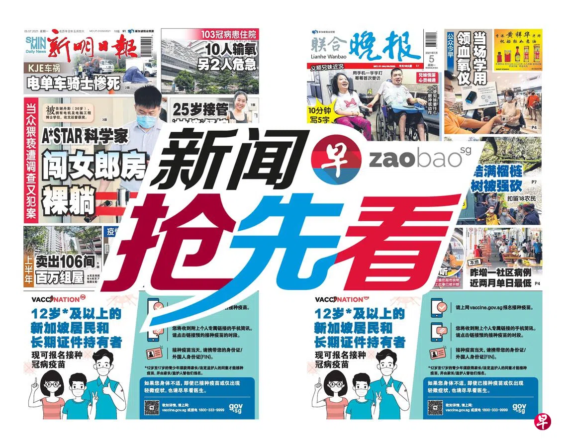zaobao.sg直播节目《新闻抢先看》让观众第一时间掌握晚间报章《新明日报》和《联合晚报》当天的重点新闻。