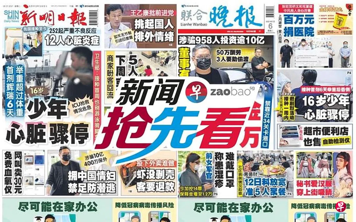 zaobao.sg直播节目《新闻抢先看》让观众第一时间掌握晚间报章《新明日报》和《联合晚报》当天的重点新闻。