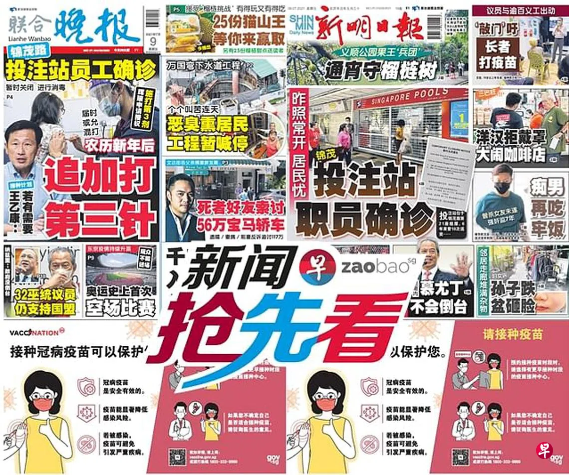zaobao.sg直播节目《新闻抢先看》让观众第一时间掌握晚间报章《新明日报》和《联合晚报》当天的重点新闻。