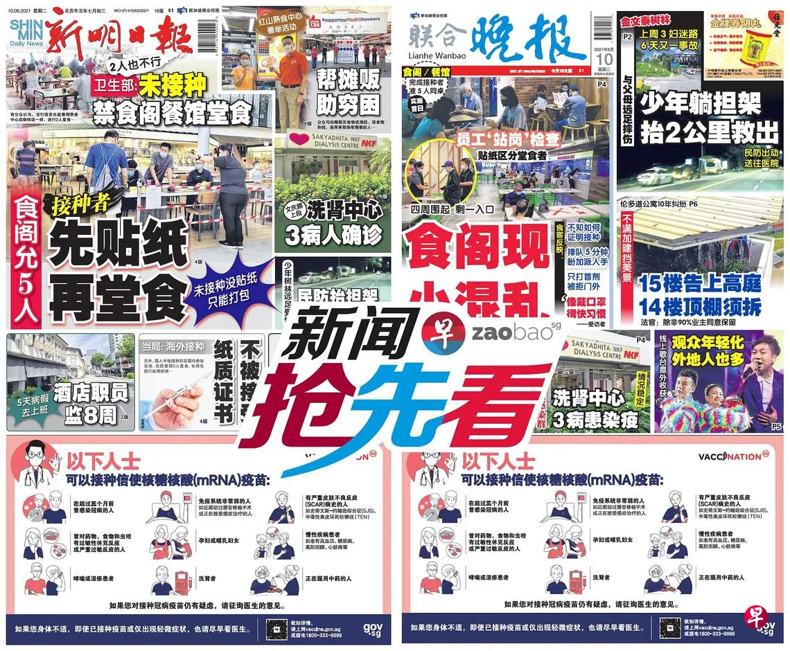 8月10日新闻抢先看:少年树林远足受伤 民防部队抬担架2公里救人zaobao.sg直播节目《新闻抢先看》让观众第一时间掌握晚间报章《新明日报》和《联合晚报》当天的重点新闻。 《新闻抢先看》在每周一至五(公定假日除外)下午4时30分直播。 节目由李丽敏、刘永健、李熙爱、卢凌之轮流主持,每期邀请新明和晚报的新闻主任和记者们上节目分享当天要闻,与观众进行交流。 ASUS是本节目的支持伙伴。 新闻抢先看新明日报联合晚报宅在家·看新闻上一篇8月10日《老总 Group Chat》:疫苗接种率达七成人口下一篇8月11日《老总 Group Chat》:阿里巴巴女员工控诉遭侵犯