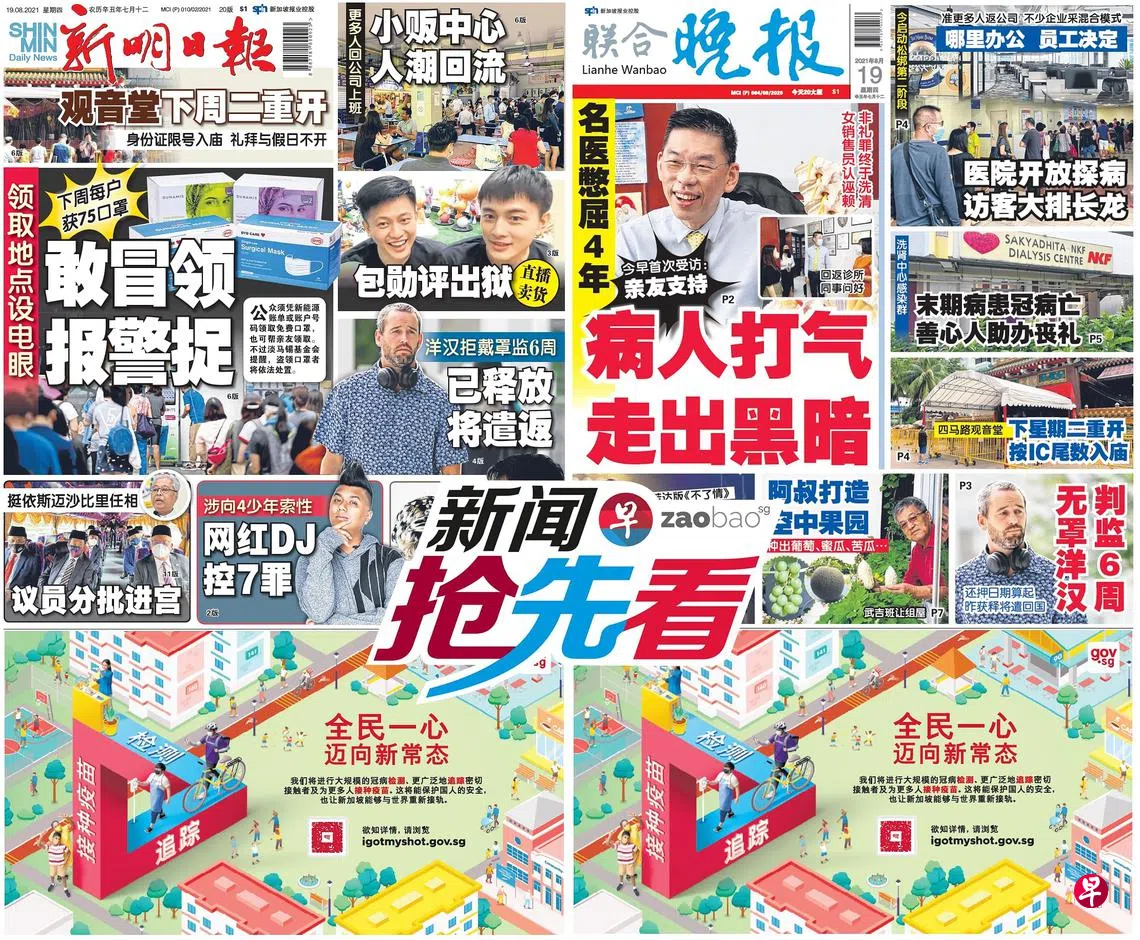 8月19日新闻抢先看:一家与友20人疑内讧 动刀大打夜染血zaobao.sg直播节目《新闻抢先看》让观众第一时间掌握晚间报章《新明日报》和《联合晚报》当天的重点新闻。 《新闻抢先看》在每周一至五(公定假日除外)下午4时30分直播。节目由李丽敏、刘永健、李熙爱、卢凌之轮流主持,每期邀请新明和晚报的新闻主任和记者们上节目分享当天要闻,与观众进行交流。 ASUS是本节目的支持伙伴。 新闻抢先看新明日报联合晚报宅在家·看新闻上一篇8月19日《老总 Group Chat》:终身健保调整癌患津贴下一篇8月20日《老总 Group Chat》:阿富汗局势发展与美国盟友反应