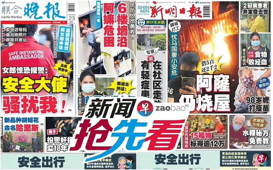 8月23日新闻抢先看:安全距离大使被指骚扰女子 当局调查zaobao.sg直播节目《新闻抢先看》让观众第一时间掌握晚间报章《新明日报》和《联合晚报》当天的重点新闻。 《新闻抢先看》在每周一至五(公定假日除外)下午4时30分直播。节目由李丽敏、刘永健、李熙爱、卢凌之轮流主持,每期邀请新明和晚报的新闻主任和记者们上节目分享当天要闻,与观众进行交流。 ASUS是本节目的支持伙伴。 新闻抢先看新明日报联合晚报宅在家·看新闻上一篇8月23日《老总 Group Chat》:推行旅游走廊计划的原因下一篇8月24日《老总 Group Chat》:美国副总统哈里斯到访新加坡