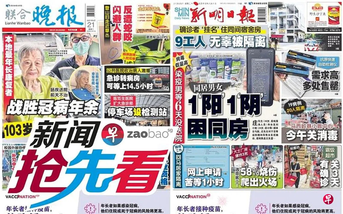 9月21日新闻抢先看:大巴窑8巷熟食中心 垃圾站旁女街友终送往隔离zaobao.sg直播节目《新闻抢先看》让观众第一时间掌握晚间报章《新明日报》和《联合晚报》当天的重点新闻。 《新闻抢先看》在每周一至五(公定假日除外)下午4时30分直播。 节目由李丽敏、刘永健、李熙爱、卢凌之轮流主持,每期邀请新明和晚报的新闻主任和记者们上节目分享当天要闻,与观众进行交流。 ASUS是本节目的支持伙伴。 新闻抢先看宅在家·看新闻新明日报联合晚报上一篇9月21日《老总 Group Chat》:让确诊者居家休养下一篇9月22日《老总 Group Chat》:美英澳的新三国演义