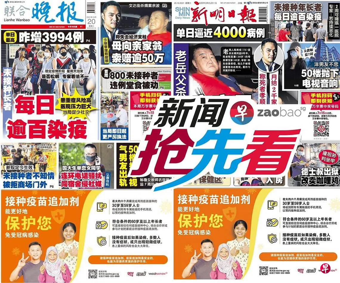 10月20日新闻抢先看:设网购骗局诈500人40万 25岁涉案男被控zaobao.sg直播节目《新闻抢先看》让观众第一时间掌握晚间报章《新明日报》和《联合晚报》当天的重点新闻。 《新闻抢先看》在每周一至五(公定假日除外)下午4时30分直播。 节目由李丽敏、刘永健、李熙爱、卢凌之轮流主持,每期邀请新明和晚报的新闻主任和记者们上节目分享当天要闻,与观众进行交流。 ASUS是本节目的支持伙伴。 新闻抢先看联合晚报新明日报宅在家·看新闻上一篇10月20日《老总 Group Chat》:李显龙与习近平通话下一篇10月21日《老总 Group Chat》:本地疫情三好三坏消息