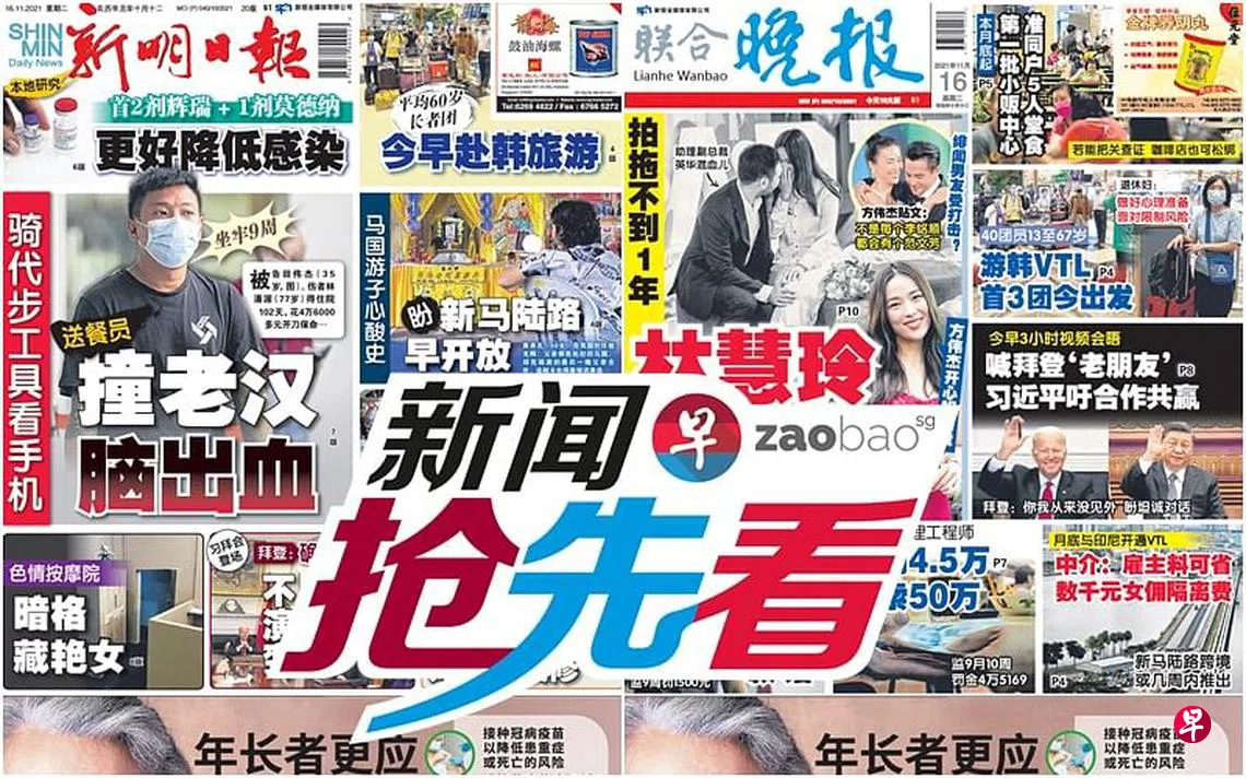 11月16日新闻抢先看:酒骑撞倒阿叔飙脏话怒打人 送餐员监9周罚款zaobao.sg直播节目《新闻抢先看》让观众第一时间掌握晚间报章《新明日报》和《联合晚报》当天的重点新闻。 《新闻抢先看》在每周一至五(公定假日除外)下午4时30分直播。 节目由李丽敏、刘永健、李熙爱、卢凌之轮流主持,每期邀请新明和晚报的新闻主任和记者们上节目分享当天要闻,与观众进行交流。 ASUS是本节目的支持伙伴。 新闻抢先看联合晚报新明日报宅在家·看新闻上一篇11月16日《老总 Group Chat》:我国防疫新宣布下一篇11月17日《老总 Group Chat》:拜登习近平首次视讯峰会