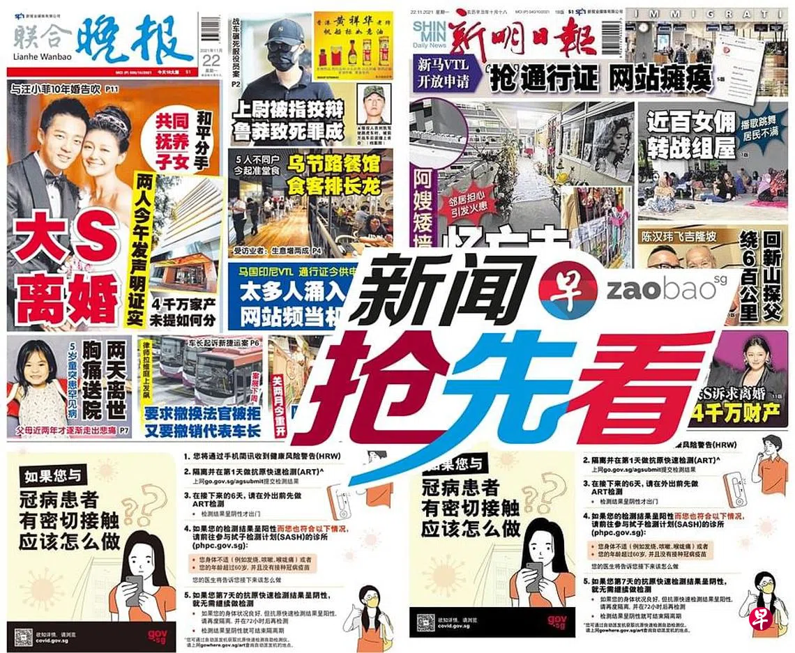 11月22日新闻抢先看:5岁女童突患罕见病 胸痛送院两天离世zaobao.sg直播节目《新闻抢先看》让观众第一时间掌握晚间报章《新明日报》和《联合晚报》当天的重点新闻。 《新闻抢先看》在每周一至五(公定假日除外)下午4时30分直播。节目由李丽敏、刘永健、李熙爱、卢凌之轮流主持,每期邀请新明和晚报的新闻主任和记者们上节目分享当天要闻,与观众进行交流。 ASUS是本节目的支持伙伴。 新闻抢先看联合晚报新明日报宅在家·看新闻上一篇11月22日《老总 Group Chat》:五人可到餐馆堂食下一篇11月23日《老总 Group Chat》:彭帅事件