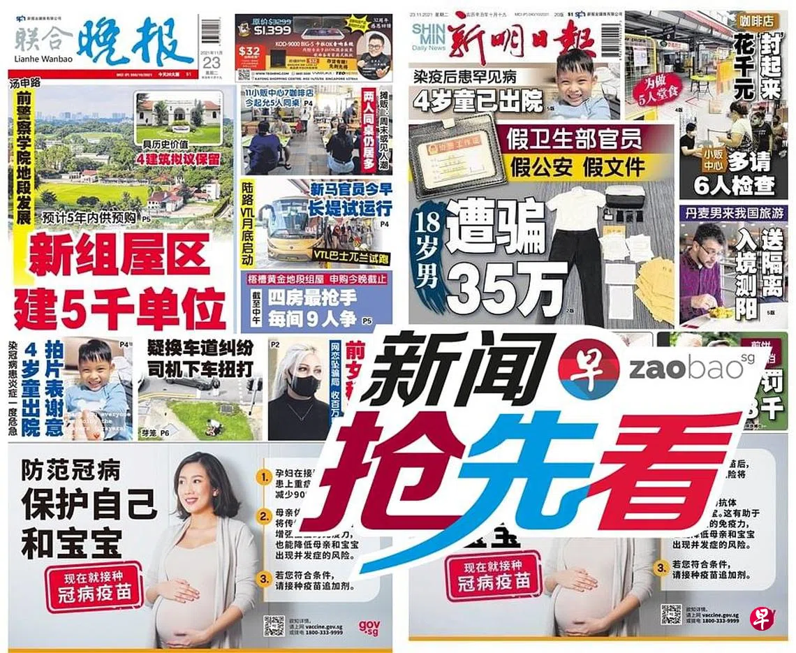 11月23日新闻抢先看:坠网恋当钱骡 收113万赃款 前女秘书监30月zaobao.sg直播节目《新闻抢先看》让观众第一时间掌握晚间报章《新明日报》和《联合晚报》当天的重点新闻。 《新闻抢先看》在每周一至五(公定假日除外)下午4时30分直播。节目由李丽敏、刘永健、李熙爱、卢凌之轮流主持,每期邀请新明和晚报的新闻主任和记者们上节目分享当天要闻,与观众进行交流。 ASUS是本节目的支持伙伴。 新闻抢先看联合晚报新明日报宅在家·看新闻上一篇11月23日《老总 Group Chat》:彭帅事件下一篇11月24日《老总 Group Chat》:亚细安与中国建立对话关系30年