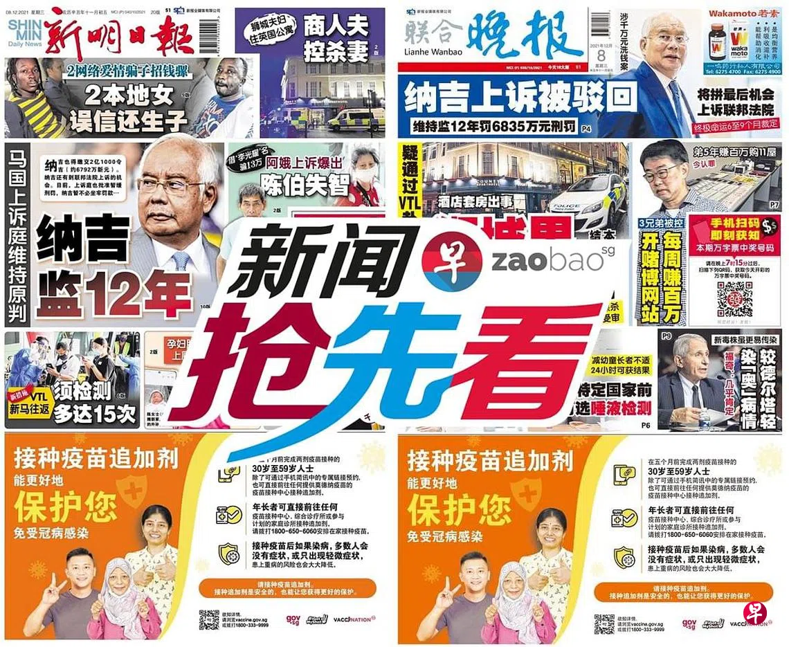 12月8日新闻抢先看:赴英国旅行 妻卧尸酒店套房 狮城商被控谋杀zaobao.sg直播节目《新闻抢先看》让观众第一时间掌握晚间报章《新明日报》和《联合晚报》当天的重点新闻。 《新闻抢先看》在每周一至五(公定假日除外)下午4时30分直播。 节目由李丽敏、刘永健、李熙爱、卢凌之轮流主持,每期邀请新明和晚报的新闻主任和记者们上节目分享当天要闻,与观众进行交流。 ASUS是本节目的支持伙伴。 新闻抢先看联合晚报新明日报宅在家·看新闻上一篇12月8日《老总 Group Chat》:台湾立委高嘉瑜遭殴打案下一篇 12月9日《老总 Group Chat》:未来需求最殷切技能清单