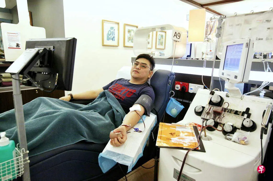 他是本地定期的血小板捐献者。有别于一般的捐血,血小板捐者必须符合更严格的条件——捐者本身的血小板计数必须超过一定数量,体重至少50公斤,年龄介于18岁至60岁,而且曾捐过血,手臂血管大小合适。