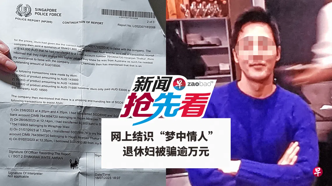 8月1日新闻抢先看:网上结识“梦中情人” 退休妇被骗逾万元注:若无法通过此页面观看直播,请点击这里。 直播节目《新闻抢先看》让观众第一时间掌握《联合早报》和《新明日报》当天的重点新闻。 《新闻抢先看》在每周一至五(公定假日除外)下午4时30分直播。节目由李丽敏、刘永健、卢凌之、杨雯婷、吴依瑾轮流主持,每期邀请新明和早报的新闻主任和记者们上节目分享当天要闻,与观众进行交流。ASUS是本节目的支持伙伴。 新闻报道:一乘客从海洋光谱号游轮坠海 搜救进行中 旧案未了男子又涉超市偷窃 两小时内落网 网上结识“梦中情人” 退休妇被骗逾万元 曾获印尼富商10万元捐助 七岁男童抗癌四年病逝 新闻抢先看新明日报上一篇8月1日《老总 Group Chat》:客工女佣被诈骗下一篇8月2日《老总 Group Chat》:秦刚被免职留下未解疑团购买此文章