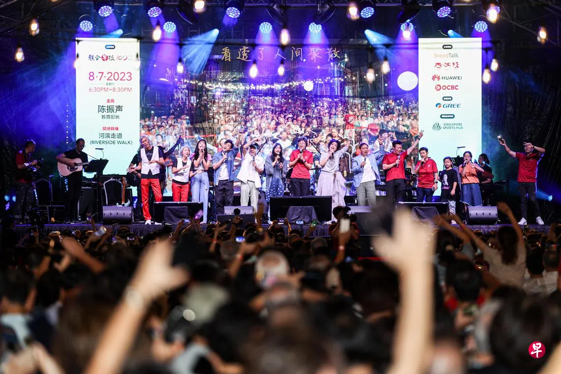 金曲悠悠传唱百年,《联合早报》邀请读者在星空下团聚,与台湾校园民歌代表齐豫和施孝荣,联同本地歌手,包括许美静、黎沸挥、人声乐团“麦克疯”等,在新加坡体育城华侨银行广场一同欢唱《橄榄树》《城里的月光》《爱如潮水》和《小幸运》等横跨不同年代的好歌。演唱会连唱两天,共吸引5000多人参与,有公众抢不到位子,甚至自带野餐垫、折叠椅,围坐在场地旁欣赏演出。