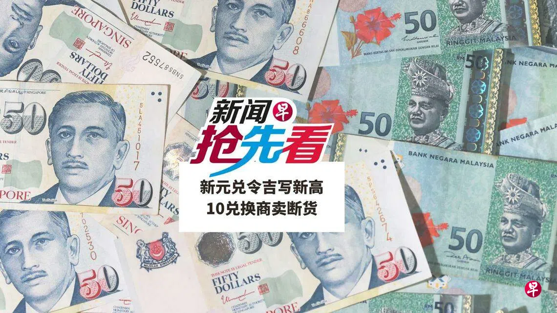 10月25日新闻抢先看:新元兑令吉写新高 10兑换商卖断货注:若无法通过此页面观看直播,请点击这里。 直播节目《新闻抢先看》让观众第一时间掌握《联合早报》和《新明日报》当天的重点新闻。《新闻抢先看》在每周一至五(公定假日除外)下午4时30分直播。 节目由李丽敏、刘永健、卢凌之、杨雯婷、吴依瑾轮流主持,每期邀请新明和早报的新闻主任和记者们上节目分享当天要闻,与观众进行交流。ASUS是本节目的支持伙伴。 新闻报道:医生酒驾逆向行驶 造成破坏判监罚款 新元兑令吉写新高 10兑换商卖断货 完成魔鬼式突击特训 英姿飒爽“花木兰”狮城第一位 以游轮配套和较高兑换率为饵 中年妇骗逾12万元监12个月 新闻抢先看新明日报上一篇10月25日《老总 Group Chat》:以哈冲突在美国造成分裂下一篇10月26日《老总 Group Chat》:我国第二座液化天然气接收站购买此文章