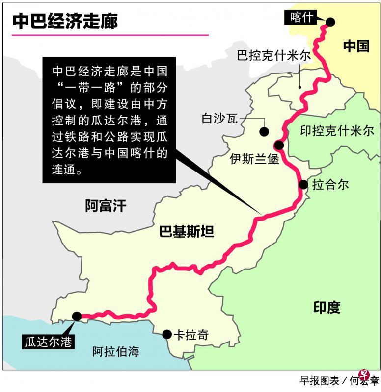 中国和巴国致力于建设的“中巴经济走廊”通过巴控克什米尔地区,该项目规模约460亿美元(约620亿新元),旨在连接中国西部与巴国的深水港瓜达尔港(Gwadar),以方便货物流通。