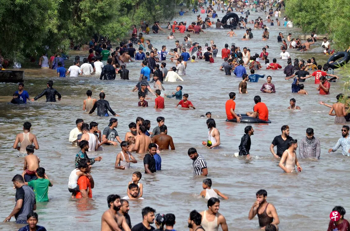 巴基斯坦近日遭热浪袭击,东部旁遮普省省会拉合尔气温高达38摄氏度,酷暑难耐,市民纷纷跳入溪流借溪水解热,对防疫构成隐患。巴基斯坦昨天新增冠病病例2117起,新增死例43起;累计病例已破92万起,累计死例则增至2万零779起。旁遮普省正是疫情最严重的地区,累计病例近34万起,死亡病例占全国一半。(新华社)