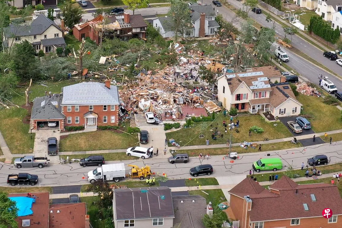 美国芝加哥西部郊区星期天晚上遭受龙卷风侵袭,至少五人受伤,其中一人伤势严重。龙卷风最先在芝加哥郊区瑞柏市(Naperville)落下,造成至少125栋房屋受损,其中16栋严重受损无法住人。图中一栋民宅更是被完全摧毁,四周满是瓦砾,一些树木被连根拔起。此次龙卷风灾害也导致超过2万2000户家庭供电中断。据美国国家气象局,龙卷风的风力或高达每小时217公里,将瓦砾卷到超过3000米的高空中。(路透社)