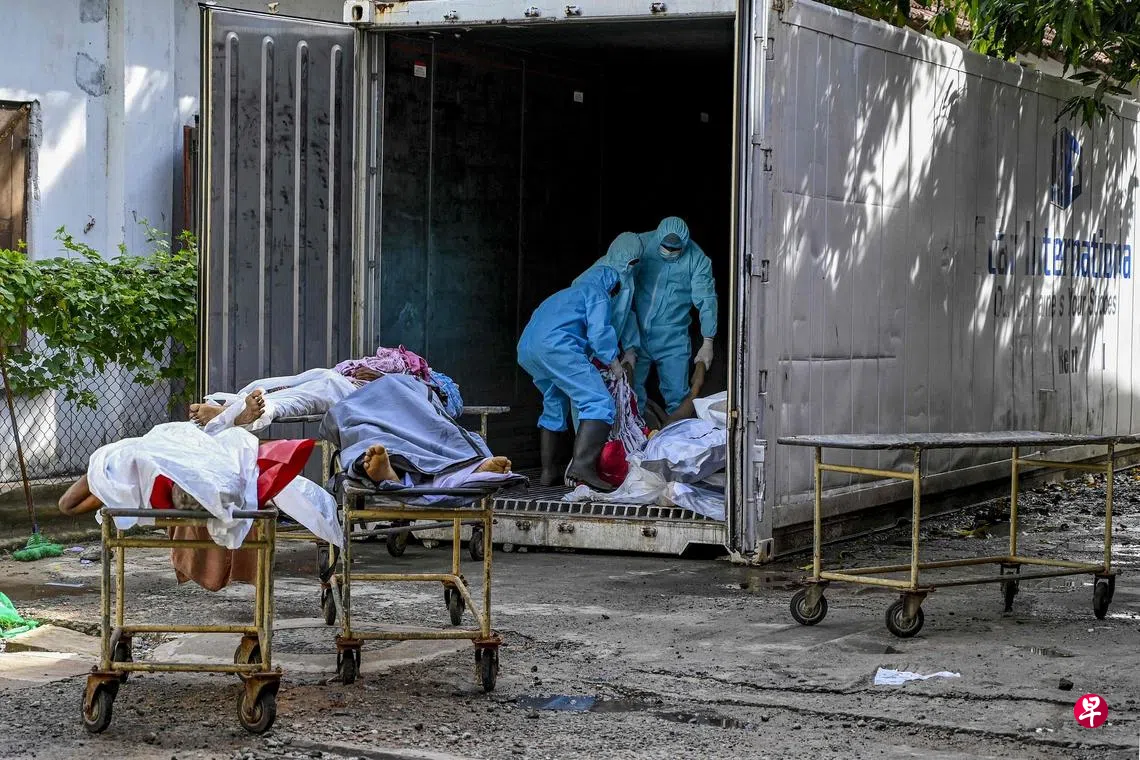 斯里兰卡冠病确诊和死亡病例激增,当局周一开始将许多死者遗体火化。该国一个月内单日新病例倍增,现在日均新增超过2500起病例、死亡病例近百起,给医疗系统造成很大的压力,尤其没有空间收存遗体,好多就存放在冷冻箱里(图)。卫生官员表示,刚过的周末医院的冠病死者增加许多,火葬场员工只得日夜不停开工。(法新社)