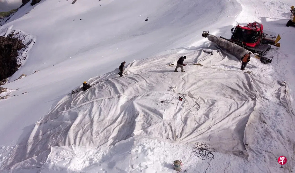 雪山遮阳 减缓融化订户赠阅文章瑞士阿尔卑斯山脉海拔3238米的蒂特利斯山,是最受欢迎的旅游目的地之一。图中瑞士恩格尔贝格度假区工作人员在酷热的夏季给雪山盖上遮阳布,努力减缓阳光照射,减低大片积雪融化。近几十年来,由于全球气温变暖,全球多个冰川缩减了。科学家预计,在未来半个世纪内,瑞士这片山区所有冰都将融化。(路透社)瑞士冰川气候变化上一篇分析:冠病患者康复一年后 许多仍感到疲劳和呼吸急促下一篇早 说