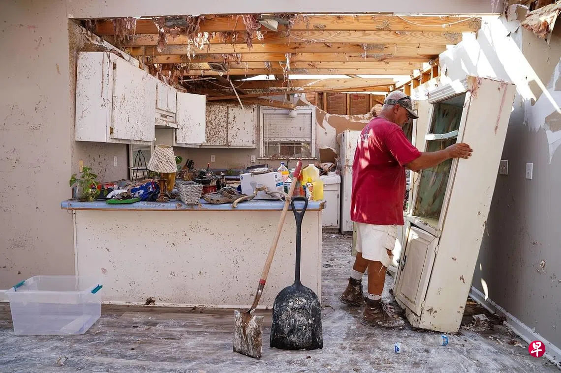 飓风艾达8月29日在美国路易斯安娜州登陆后一路北上,造成巨大破坏,至少有60多人因这场风暴丧命,部分灾区仍处于断电状态。图为路州居民在飓风过境后清理受损的房子。路州州长爱德华兹周六说,该州遇难人数已增至12人,死亡人数或进一步上升。除了路州,纽约、新泽西等其他州的灾情也不轻,其中新州有至少25人丧命,是伤亡最惨重的州属。美国总统拜登计划本周前往新州和纽约州视察灾情。(法新社)