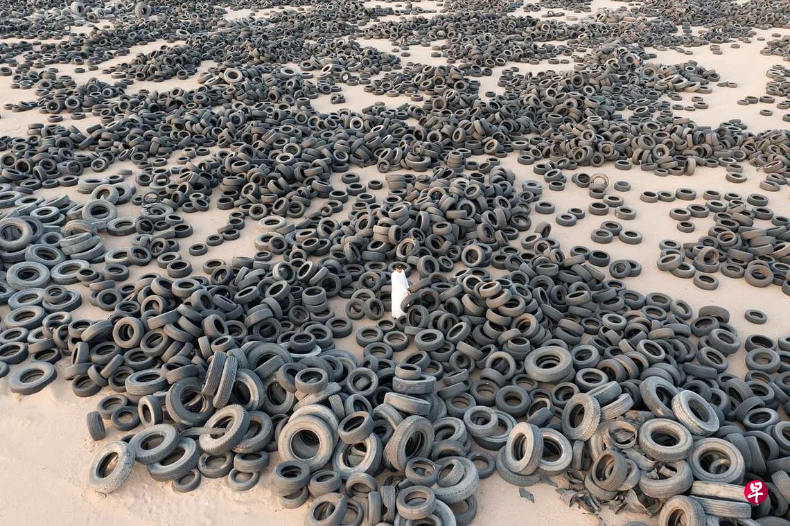 接近沙特阿拉伯边界的科威特城市萨尔米(al-Salmi)的这片土地估计有4200多万个废弃轮胎。这些数量在世界上也数一数二的废胎来自首都科威特市以西32公里的贾赫拉。这些废胎17年前开始堆积在此,在2012年至2020年间发生过三场大火,离此仅7公里外的一个住宅区饱受臭气和毒烟之害。过去一个月,废胎再生公司用卡车跑了4万4000多趟次,才把它们运到回收厂,让当局在这片土地展开智能城市发展计划。(路透社)