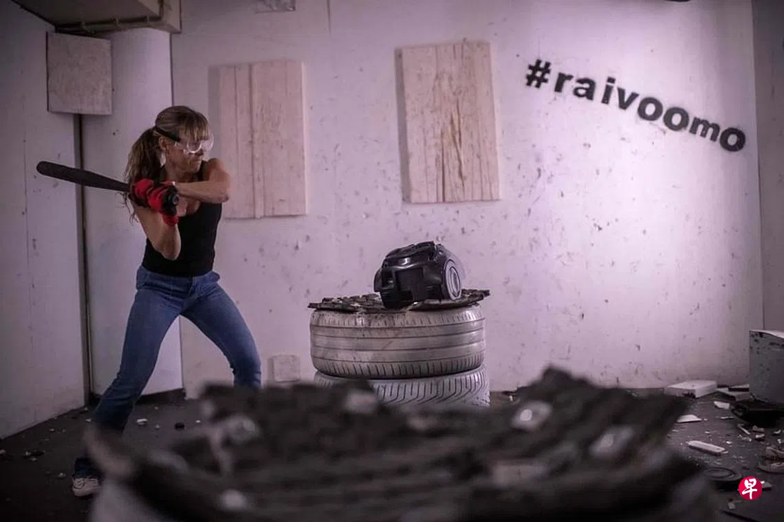 芬兰经常被评选为世界上最幸福的国家,但和全球其他地方一样,持续已久的冠病疫情也给芬兰人带来不少压力。这间新开的“发泄屋”就看准个中商机,顾客可在做足防护措施的情况下,安全与尽情地“搞破坏”,借此发泄情绪。据悉,这项新服务尤其受到女性欢迎。图为50岁的女顾客苏林戴上护目镜与防护手套,用手中的棒球棍打砸各种物件。(法新社)