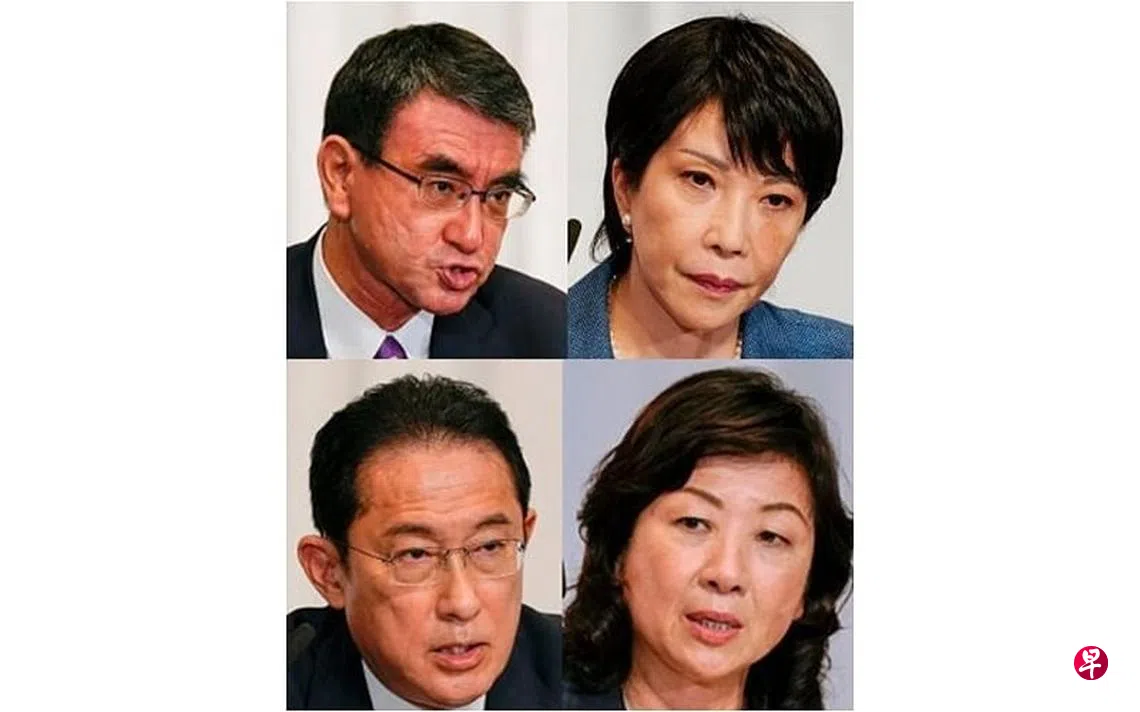 本月29日该党第45届总裁选战,一般相信,将是前外交部长岸田文雄(64岁)和行政改革部长河野太郎(58岁)之争。前总务部长高市早苗(60岁)和代理干事长野田圣子(61岁)虽然也参选,但被视为只是“陪跑”。