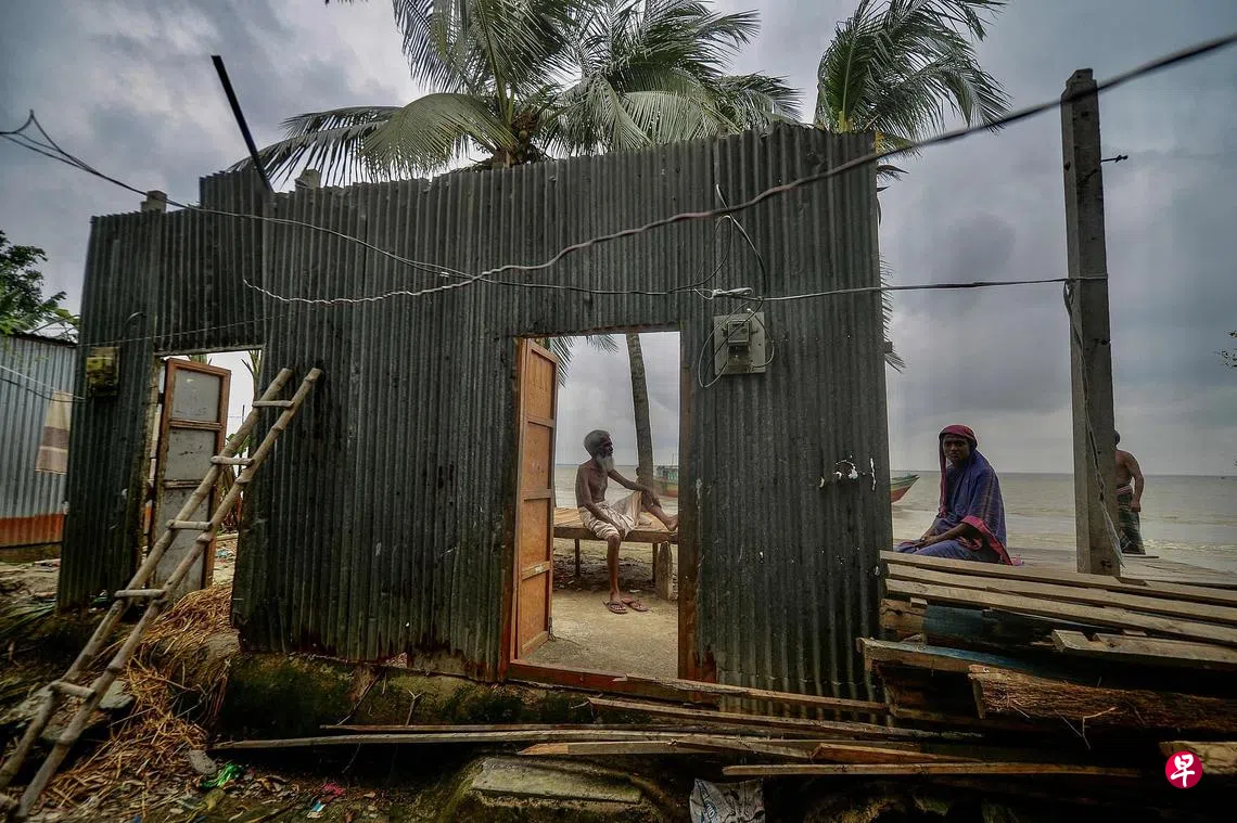 气候变暖引发的极端天气,使孟加拉这个低洼国家深受其害。图中这位65岁老翁原本住在恒河支流博多河河畔,但突发洪水将他的住家冲毁,如今只剩下一面锡板墙。国际流离失所监测中心说,2008年至2014年间,近500万孟加拉国人在国内流离失所。世界银行预测,到2050年,将有多1330万人步他们的后尘。在即将召开的格拉斯哥气候峰会上,孟加拉将再次强调它因极端天气而面临的挑战,并呼吁国际社会协助它适应气候暖化。(法新社)