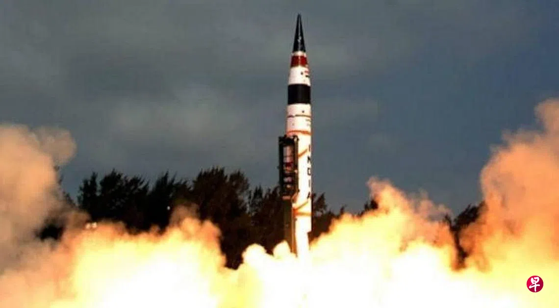 根据印度国防部,印度周三晚从东部的阿卜杜勒卡拉姆岛发射这颗“烈火5”(Agni-V)导弹,最后落入孟加拉湾。《印度时报》说,以该导弹的射程,中国最北地区也在其打击范围内。