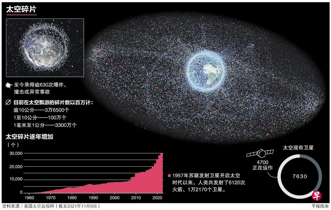 (华盛顿彭博电)俄罗斯近日在外太空进行的反卫星导弹试验将一颗废弃卫星炸成上千个碎片,制造了大量太空垃圾,其中一块碎片还高速从国际太空站掠过,迫使站内的宇航员紧急躲避。随着商业航天巨头SpaceX、波音等企业计划在未来几年发射多达6万多个商用航天器上天,太空垃圾的威胁愈发引起关注。