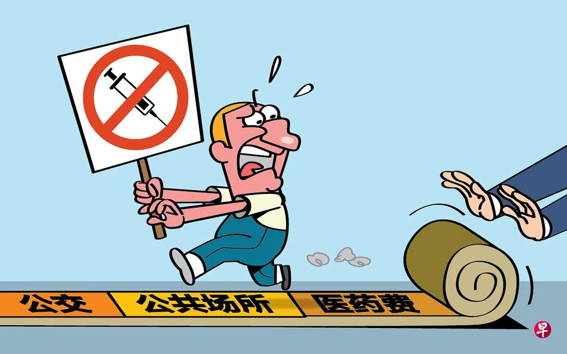 目前,适合但坚持不接种疫苗者须面对不能堂食、进入购物中心等限制。而从12月8日起,适合接种却坚持不接种疫苗的民众,若感染冠病须自付医药费,这包括在医院和冠病治疗设施接受治疗的患者。