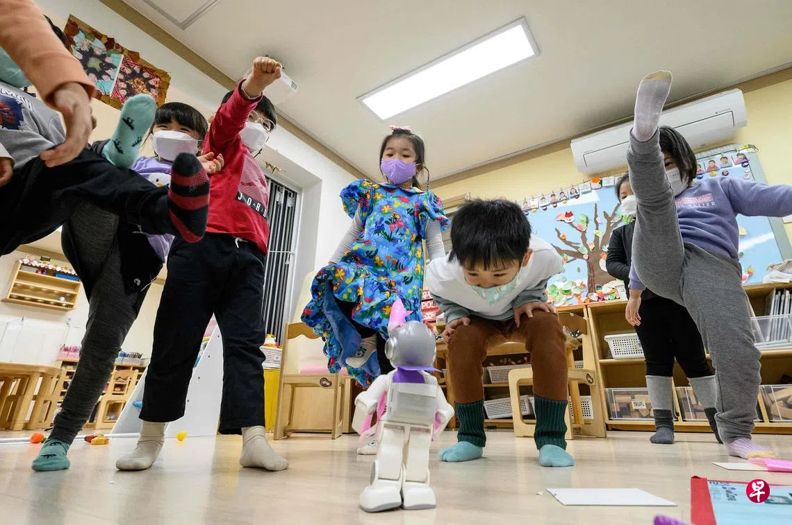 高科技是发展大趋势,韩国首都首尔开展新计划,要让新生代从小就接触科技。这个计划的主角是高24.5公分的机器人Alpha Mini,对象是四五岁的小朋友。它会带领小朋友们唱歌跳舞、讲故事给他们听,还会搞怪如“放屁”逗得孩子们大笑。有了这么有趣的小老师,学习氛围当然就更好了。市政府儿童教育官说:“将来,能够掌握人工智慧和相关工具非常重要。我们相信,幼儿班的这些经验对于成长到少年甚至成年都有作用。”(法新社)