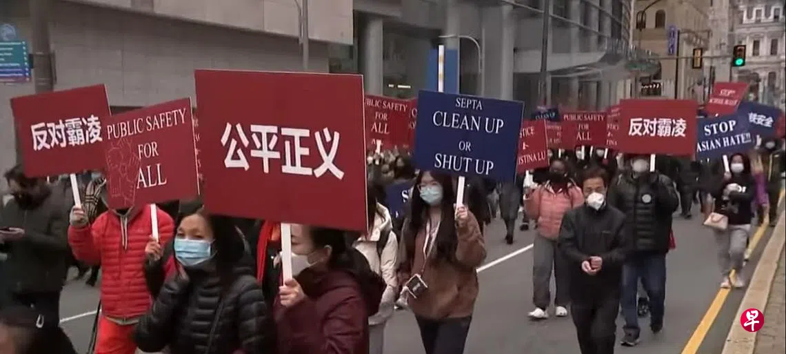 (华盛顿讯)美国宾州费城侨界近日组织了一场“反歧视、反暴力、反霸凌、安全城市”游行集会,数千名华侨华人聚集在费城市政厅外,手举“停止亚裔歧视”“保障公共安全”等标语牌游行至费城市教育局。