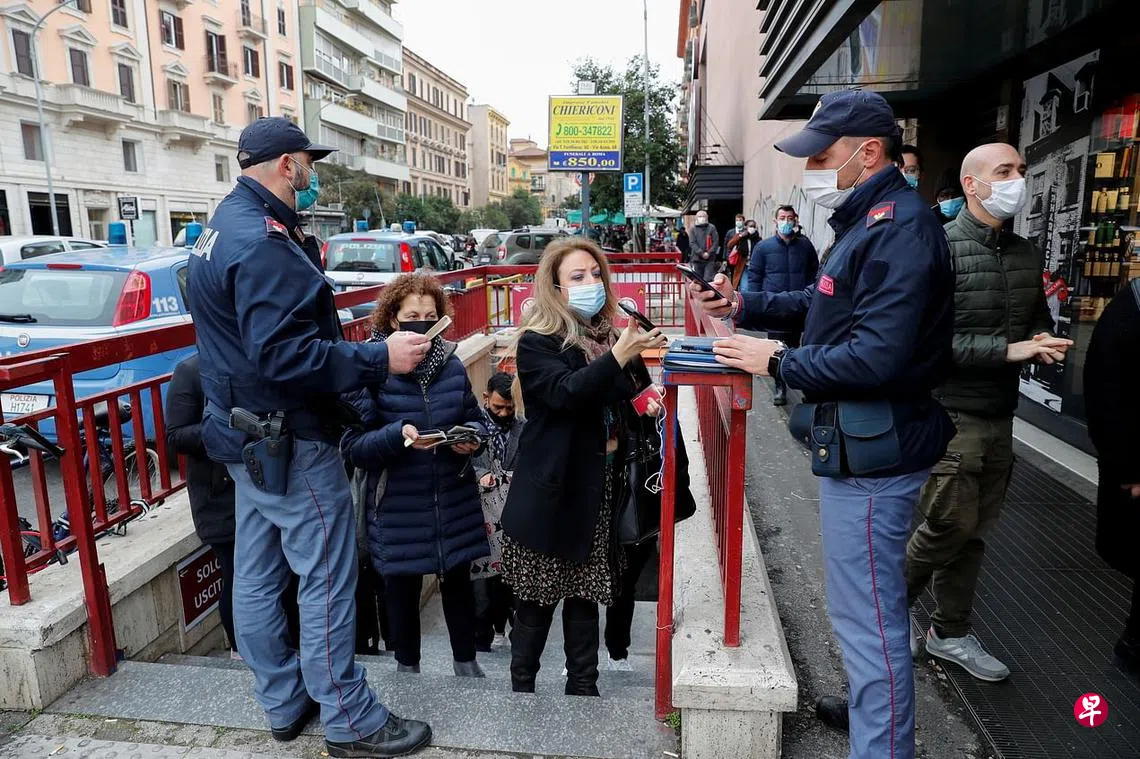 意大利周一(6日)起扩大冠病“绿色通行证”使用范围,禁止未接种疫苗者搭乘公共交通。新措施实施第一天,罗马出动警察在市内多个地铁站入口处,查看民众是否持有“绿色通行证”。除了搭乘公共交通,意大利政府也要求民众在进入餐馆、戏院和健身房等室内活动场所时,出示健康证明。这个规定在意大利一些城市引发抗议集会活动。(路透社)