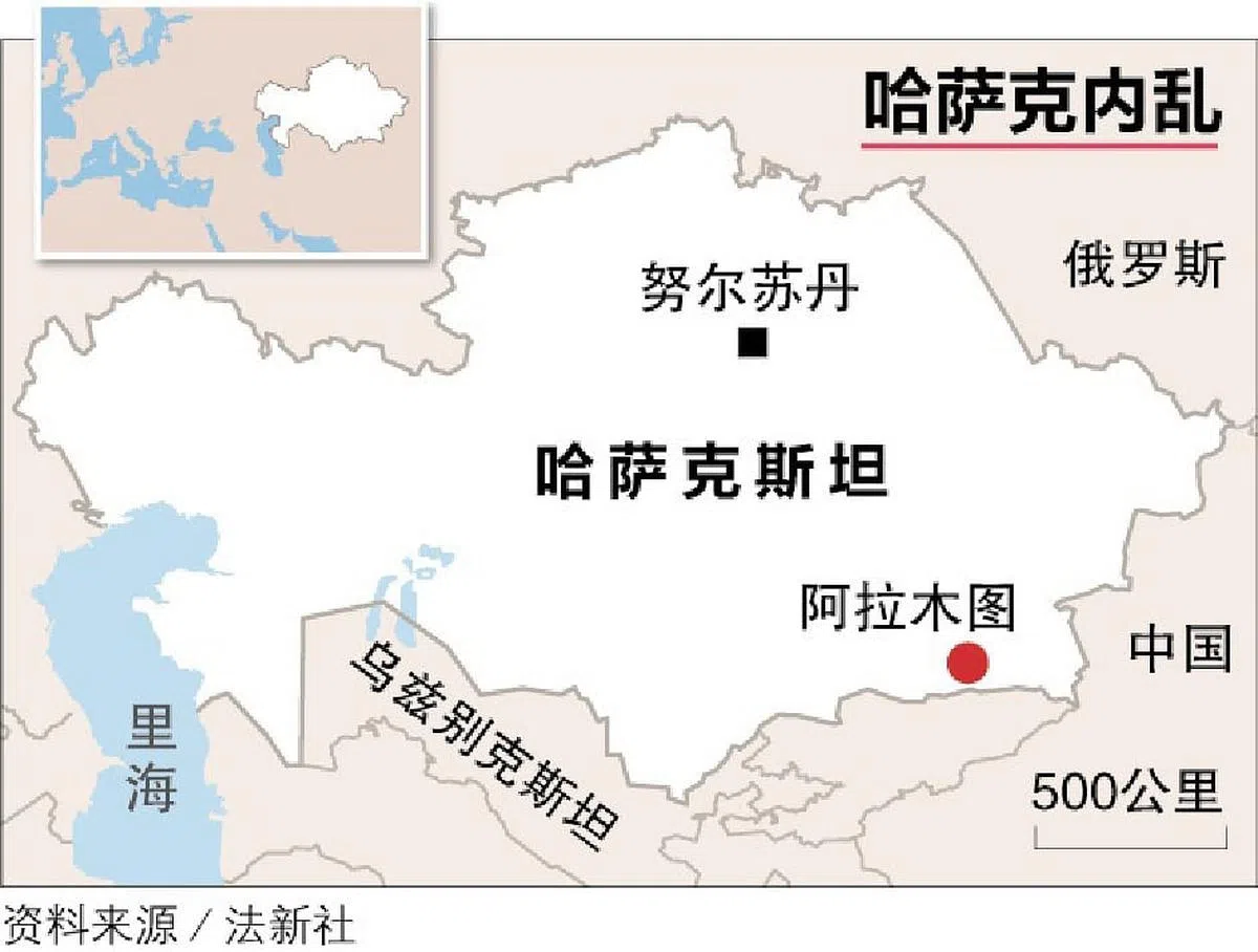 周三当天,骚乱者还占据阿拉木图机场,扰乱这个重要经济城市的航空交通。政府随后调派军人到场清除,才重新控制机场,不过,好些航空公司决定,暂时取消飞往阿拉木图的航班。