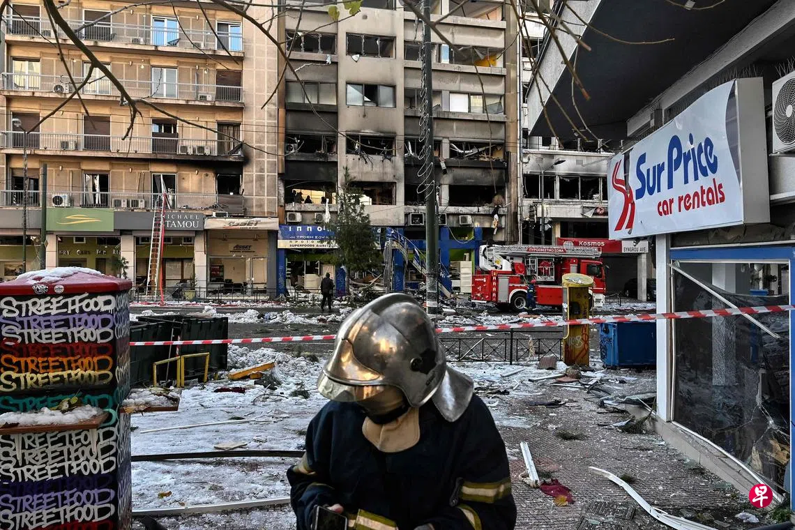 希腊首都雅典市中心昨天发生爆炸并引发火患,导致三人受伤,数栋建筑物遭到严重破坏。据当地媒体报道,爆炸发生在早上7时左右,地点位于一栋正在装修的建筑内。爆炸引发火灾,导致一名老人受重伤,另有两人出现呼吸困难问题。强大的爆炸威力还导致周边建筑的窗户被震碎、外墙受损。警方初步认定爆炸是瓦斯泄漏所致,具体原因还在调查中。(法新社)