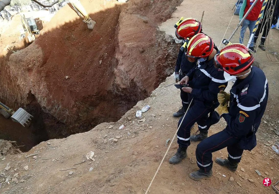 摩洛哥北部村落一名五岁男童意外跌入一处深达32公尺的窄井。男童的父亲说,他周二找儿子找了几个小时,后来发现他掉进井里。由于这处深井坑口直径仅45公分,越往下就越窄,成人无法钻入井底,施救工作困难。救援人员分秒必争,以绳索垂降饮食入井供男童维生,同时在竖井周边范围开挖。医疗团队已进驻现场,一旦男童获救重返地面,医护人员就能为他做初步健康检查并执行必要的抢救程序。警方则派直升机到场待命,可随时把男童送到附近医院救治。
