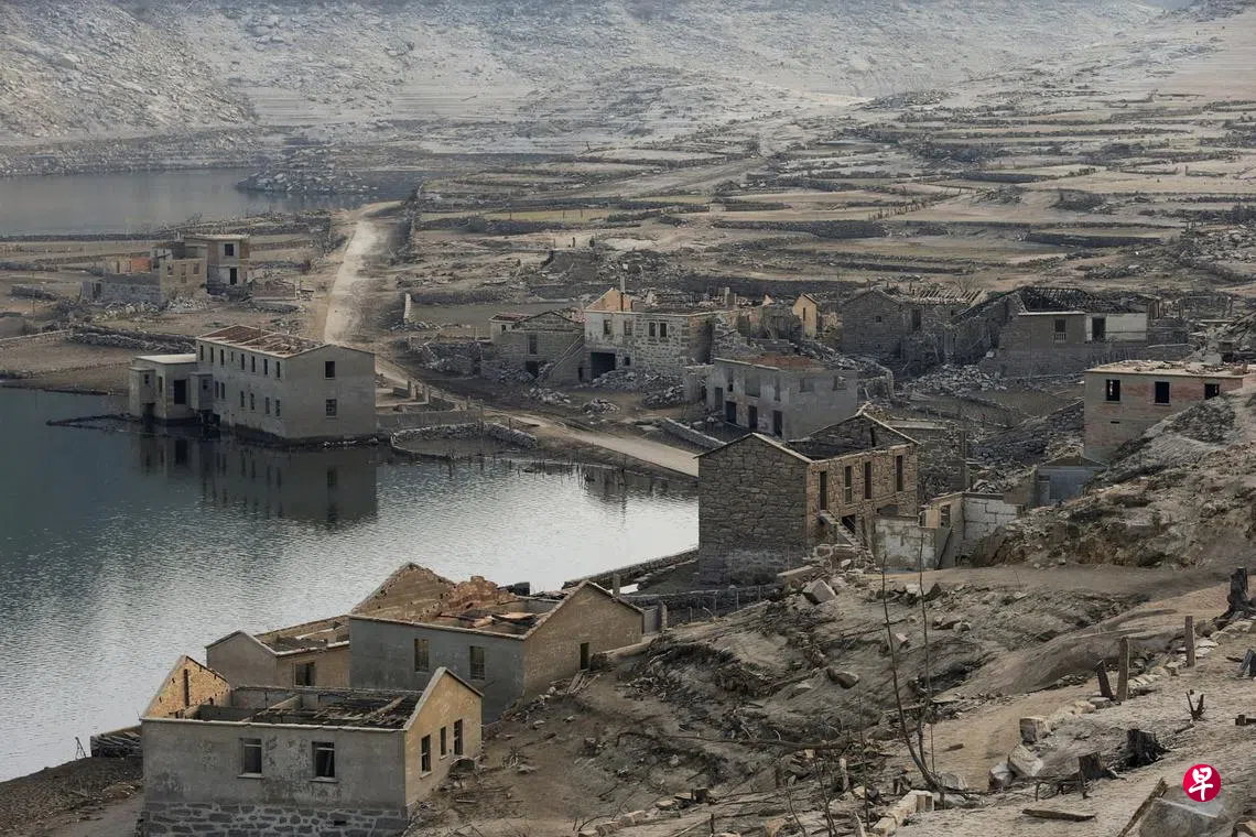 西班牙西北部靠近葡萄牙边境的一个小村庄阿赛雷多(Aceredo)在1992年因水坝建造工程而展开人口搬迁,之后整个村子沉入水下。这座“消失”了30年的村庄,近日因当地天气干旱,水库的水位持续下降及干涸而重见天日,吸引大批好奇游客一窥这座现已犹如鬼城般的村庄。(路透社)