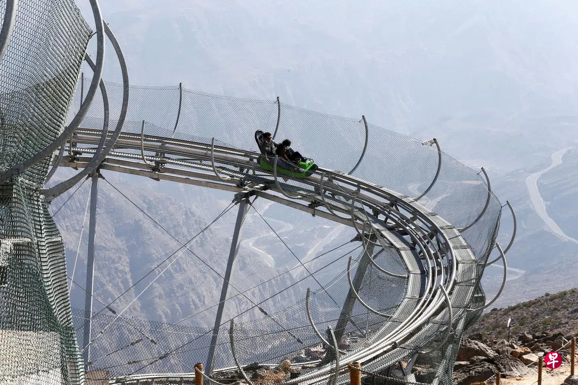 为了振兴受冠病疫情重创的旅游业,阿拉伯联合酋长国上周推出了另一项惊险刺激的高山过山车。这个建在阿联酋北部酋长国拉斯海马最高峰的过山车全长1885米,是中东地区第一个、也是最长的游乐设施,让游客在壮丽山脉中亲身体验,以40公里时速往下俯冲并急转直下的快感。(路透社)